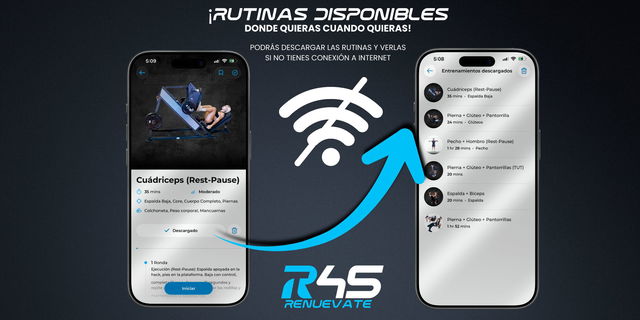 Puedes cancelar en cualquier momento y no habrá cobro a tu tarjeta. Con tu suscripción accedes a todo el ecosistema RT45: programas de entrenamiento como Renuévate, estiramientos, yoga, cycling y mucho más, creados para ayudarte a transformar tu cuerpo, fortalecer tu mente y construir hábitos que perduren en el tiempo. Entrena como prefieras con Video guiado, Alternativa Gym y Alternativa Casa, adaptado a tu nivel, a tu ritmo y a tu estilo de vida. Además, tendrás acceso a planes nutricionales por objetivo, variedad de planes de alimentación y muchas recetas saludables. Disfruta también de clases en vivo, recetas en vivo, charlas nutricionales, podcasts, invitados especiales y mensajes motivacionales diarios que te impulsan a no rendirte. RT45 es más que una app: es una escuela de transformación, donde aprendes, creces, te disciplinas y te conviertes en tu mejor versión, acompañado por una comunidad que cree en ti.